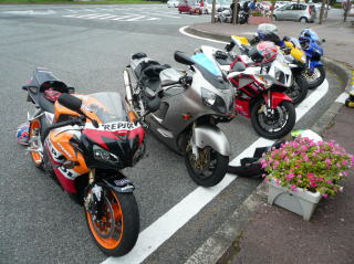 派手なバイクが5台。